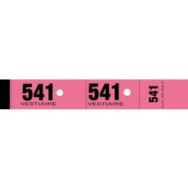 Carnet de 50 tickets vestiaire de couleur rose, numérotés pour une gestion pratique et organisée des vestiaires lors d’événements ou dans les établissements. Les tickets sont prédécoupés et faciles à distribuer, assurant un suivi efficace des effets personnels.