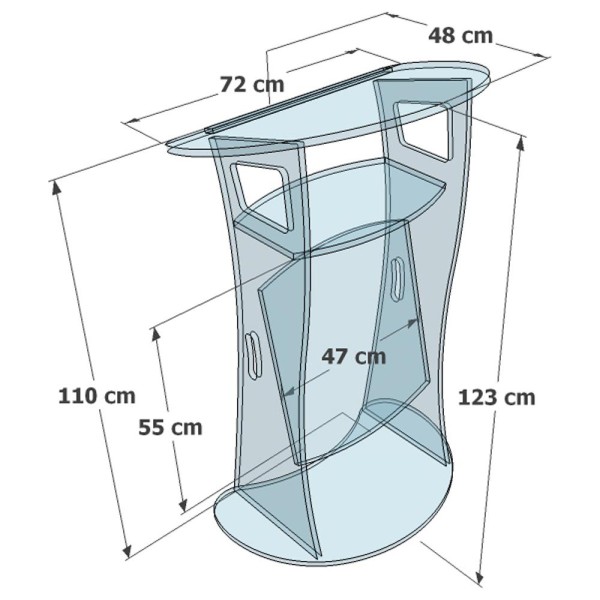 Ce pupitre de conférence vous séduira pleinement par son design novateur. Tout en plexiglas transparent, il est sobre et élégant. Comme tous nos pupitres le Plexiglas que nous utilisons est du Plexi "coulé" ce qui est un premier choix, la Roll Royce de la matière plastique.