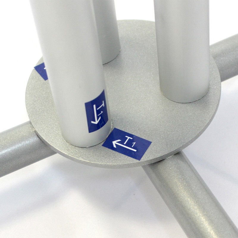 La structure peut être habillée d'une housse en textile Stretch imprimé(en option) épousant parfaitement les contours de la table pour une couverture visuelle intégrale. Les visuels sont lavables en machine, faciles à installer, et parfaits pour renouveler vos messages de communication