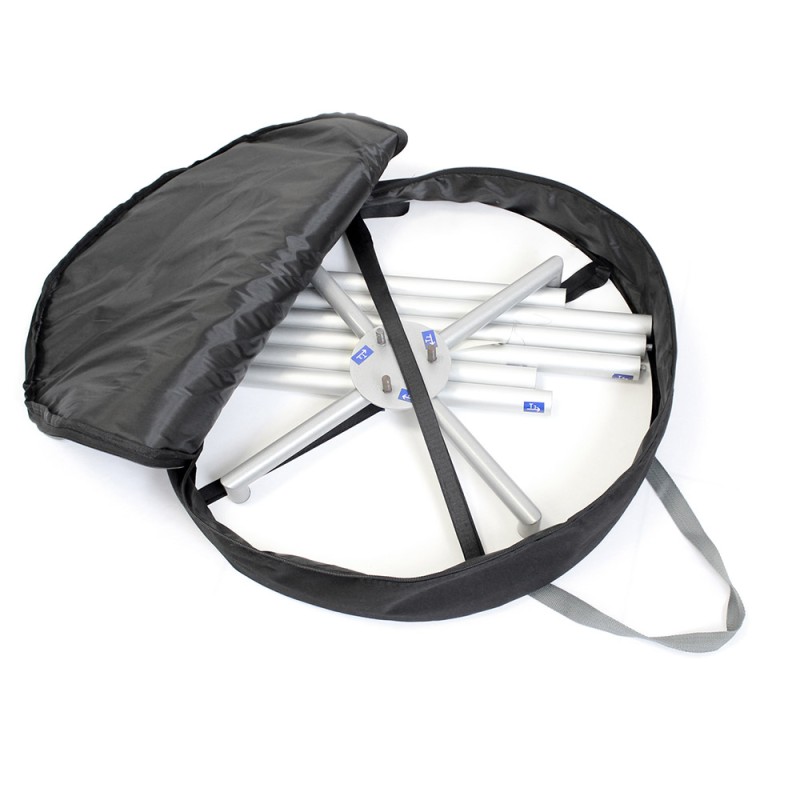 Idéale pour les zones d’accueil et les stands de dégustation, cette table ronde offre un espace de présentation épuré et moderne. Dotée d'une embase soudée pour une solidité renforcée et d’un plateau en MDF résistant, elle convient parfaitement aux zones à fort passage. Son habillage graphique à 360° assure une visibilité optimale de votre message, quel que soit l’angle de vue — un support incontournable pour tous vos événements.