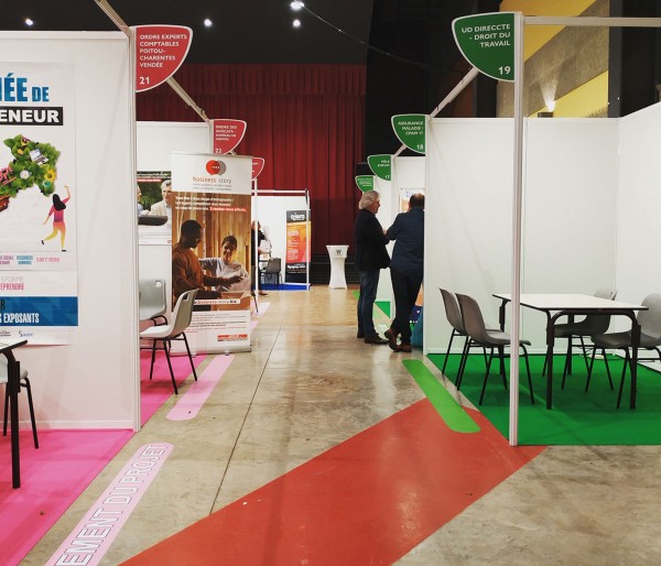 - Définir les implantations des stands sur plan en respectant les sens de circulation, les sorties de secours, les points d’eau incendie