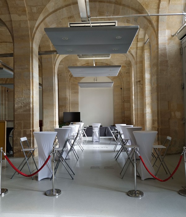Nous le louons houssé. Sa housse en lycra blanche ou noire, extensible, possède 4 renfors aux pieds.