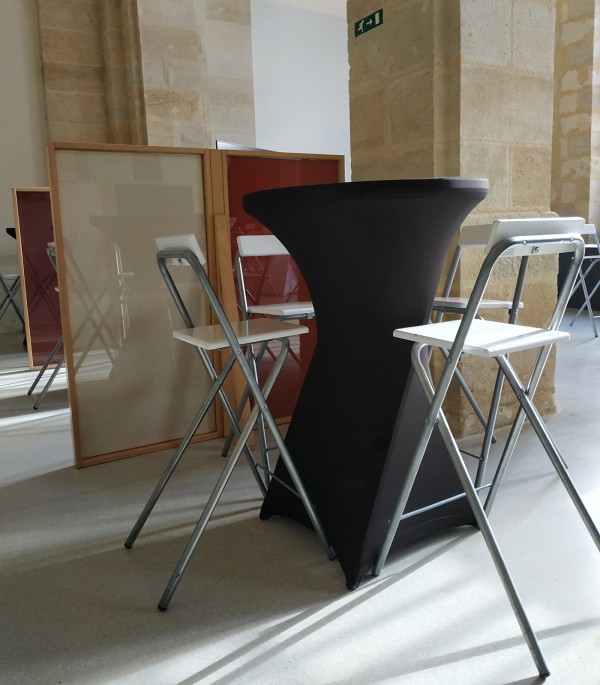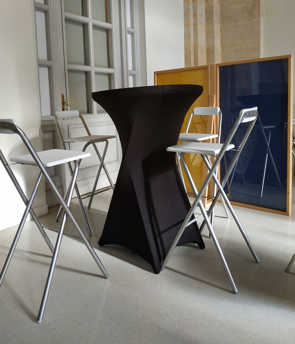Ce mange-debout en aluminium a un plateau de Ø 80cm en Pvc moulé, il est d'une hauteur de 110cm.
