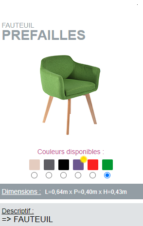 Confortable et d'un joli design Scandinave, le fauteuil Préfailles est idéal sur scène ou dans un espace Vip, un stand Pieds en bois clair, assise en tissus de différents coloris