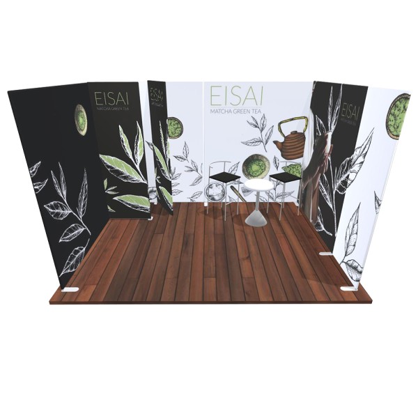 Le stand Modulate 12m² - Design 1 offre un espace d’exposition élégant et moderne, idéal pour mettre en valeur vos produits ou services. Doté de panneaux textiles aux motifs végétaux raffinés, il propose une ambiance naturelle et accueillante, parfaite pour attirer l’attention lors de salons et événements professionnels. Sa structure modulaire assure une installation rapide et une adaptabilité selon vos besoins. Le sol en bois ajoute une touche chaleureuse et sophistiquée à l’ensemble.