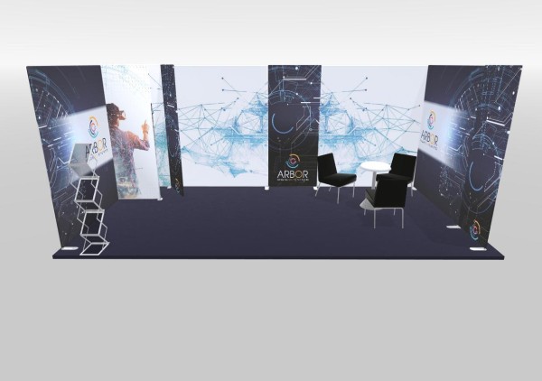 Le Stand Modulate 18m² - Design 1 offre un espace d’exposition moderne, spacieux et ouvert, parfaitement adapté aux salons professionnels. Grâce à ses parois modulaires et ses visuels personnalisables, il attire l’attention et met en valeur votre identité visuelle. Les zones de discussion avec tables et chaises intégrées facilitent les échanges avec les visiteurs dans un cadre confortable et professionnel. Idéal pour optimiser votre visibilité et accueillir vos prospects dans les meilleures conditions.