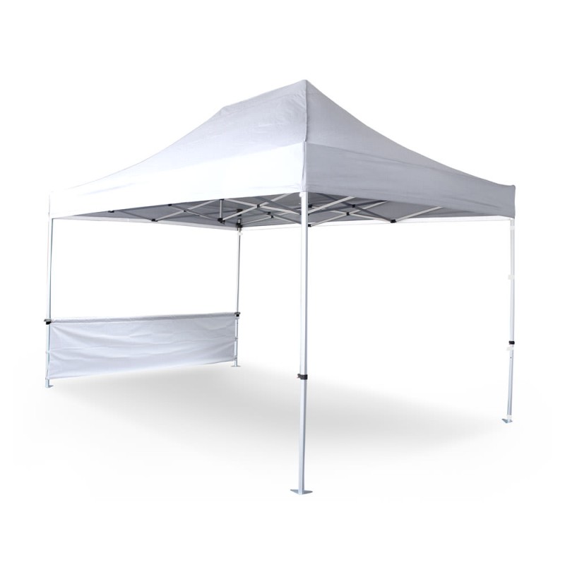 La Zoom Tent combine visibilité maximale et montage express pour garantir le succès de vos événements. Cette structure légère en aluminium de 3 x 4,5 m est dotée d'un système d'ouverture parapluie : elle se déplie et se replie en quelques minutes sans outils ! Elle est idéale pour les salons, marchés en plein air, événements sportifs ou promotionnels. Entièrement personnalisable, la Zoom Tent offre différentes options d'impression (canopy, frontons, murs entiers ou demi-murs), ou des tissus classiques en noir ou blanc pour un rendu plus sobre et fonctionnel. Que vous cherchiez à promouvoir votre marque ou simplement à vous abriter, cette tente événementielle polyvalente est faite pour vous.