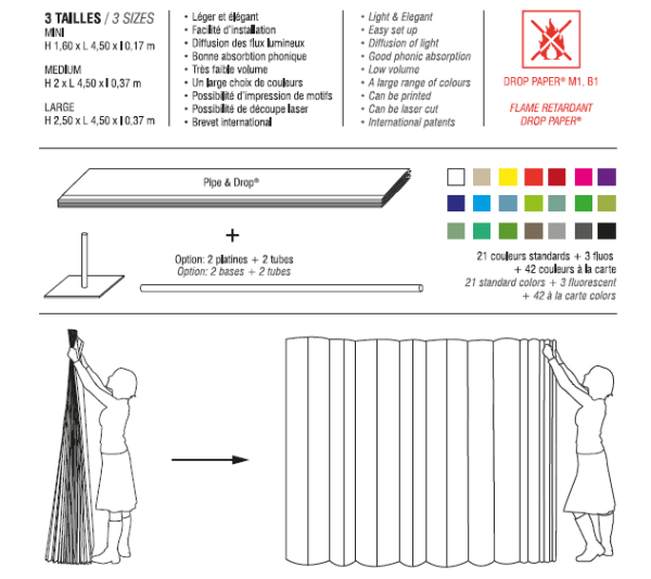 Autostable la cloison en Drop Paper® est livrée à la LOCATION ET A LA VENTE avec des platines de stabilisation.