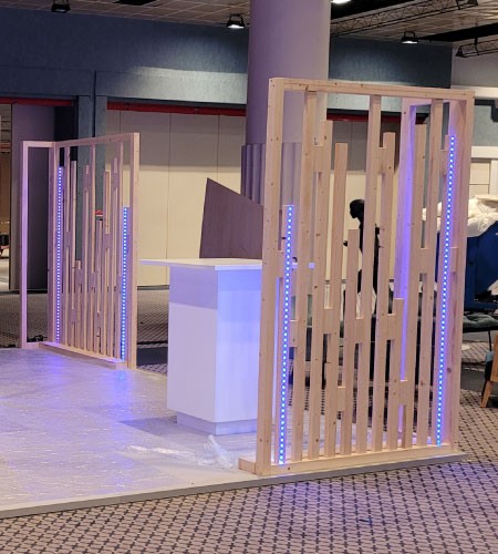 Claustra moderne en bois recyclé, idéal pour séparer les espaces tout en apportant une touche naturelle et design. Sa structure légère laisse passer la lumière, créant une ambiance agréable et chaleureuse. Conçu de façon écoresponsable, ce cloison s’intègre parfaitement à tout environnement professionnel ou événementiel.