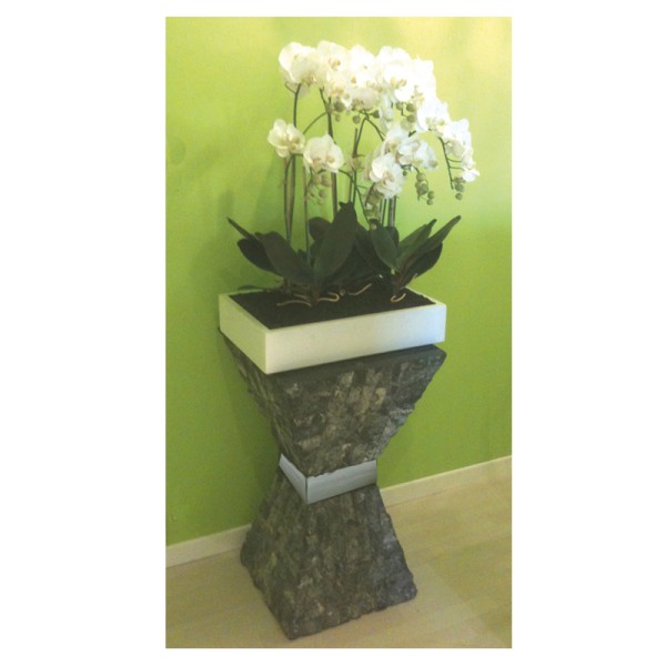 Cet élégant arrangement associe des orchidées blanches raffinées à un pied d’estal en pierre au design moderne. Idéal pour sublimer une entrée ou un salon, il apporte une touche de nature et de sophistication à votre intérieur, tout en mettant en valeur la beauté délicate des fleurs.