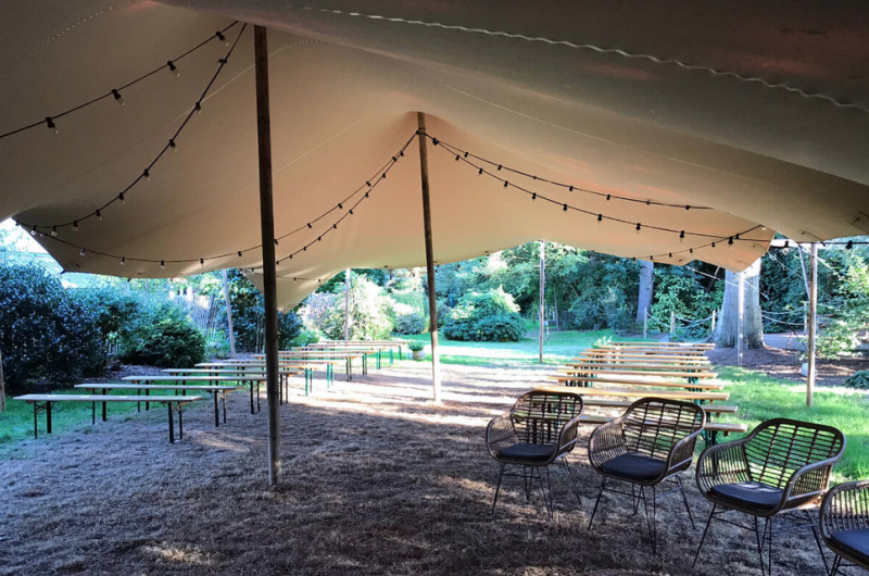La tente Stretch allie élégance et modularité pour tous vos événements en extérieur, qu’il s’agisse d’un mariage, d’une réception ou d’une fête conviviale. Son design moderne et sa toile résistante s’intègrent parfaitement dans tous les environnements, du jardin champêtre aux châteaux prestigieux. Lumineuse et spacieuse, elle offre une atmosphère chaleureuse et protège efficacement vos invités des intempéries tout en maintenant une grande liberté d’aménagement.