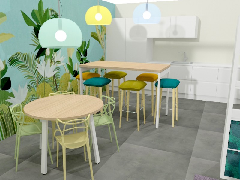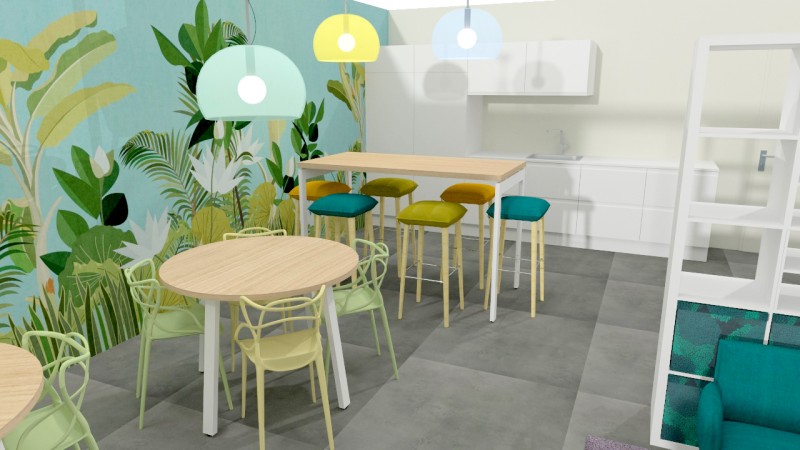 Cette photo nous montre un aménagement de cuisine pour une entreprise.